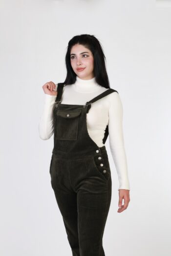 أفرهول نسائي أنيق بخامة كوردروي مخملية ناعمة، مثالي للإطلالات اليومية خلال الموسم البارد. تصميم مريح مع جيب أمامي وأزرار جانبية لسهولة اللبس وضبط المقاس.