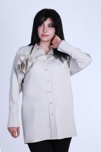 قميص نسائي طويل مزوّد بزهرة ثلاثية على الكتف 0 ل.س