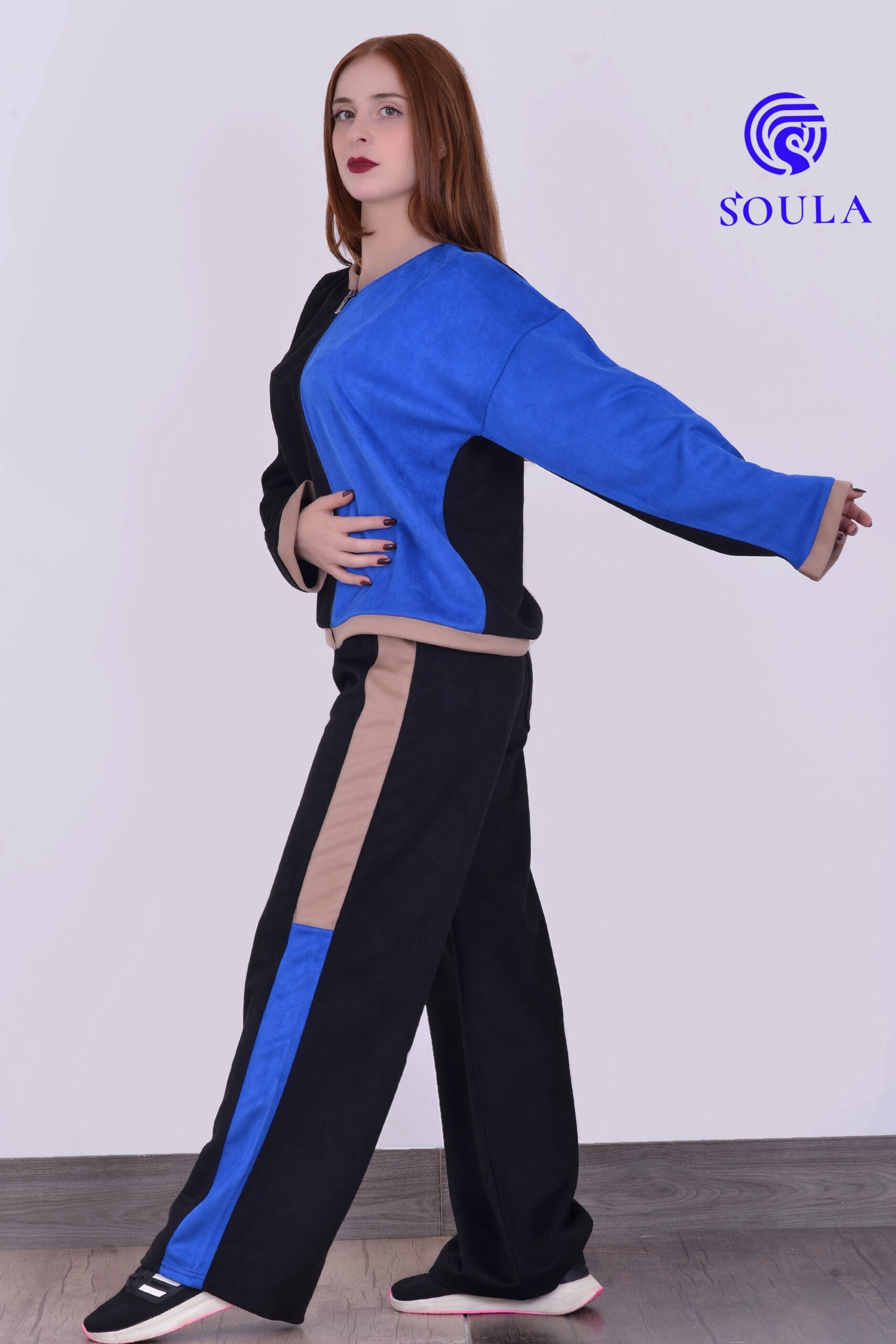 طقم بيجاما عملي بتصميم عصري، مع سحّابات جانبية تضيف لمسة شبابية أنيقة.