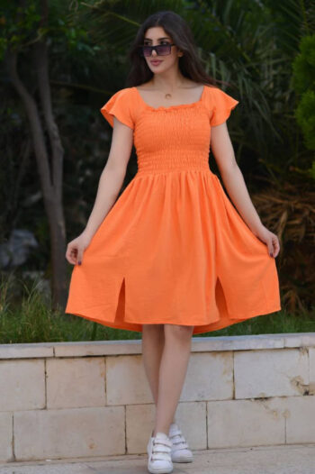 فستان كوردروي شتوي قصير مع حزام – أزرار أمامية وتصميم عملي