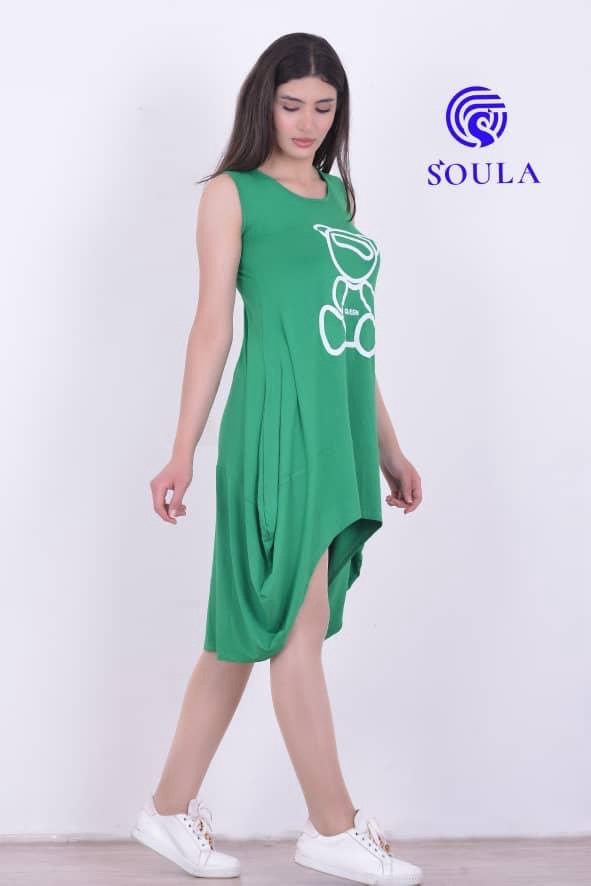 فستان كت مريح بلون أخضر صيفي مع طبعة شبابية عصرية.