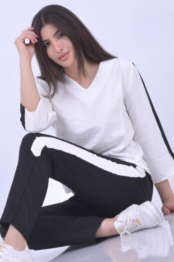 بدلة رياضية نسائية واسعة بخطوط جانبية – قطعتان