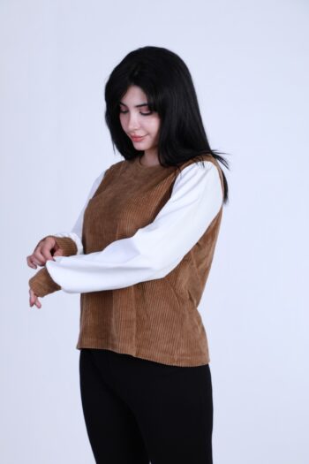بلوزة مخمل كوردروي بأكمام قطن – تصميم عصري بأزرار خلفية