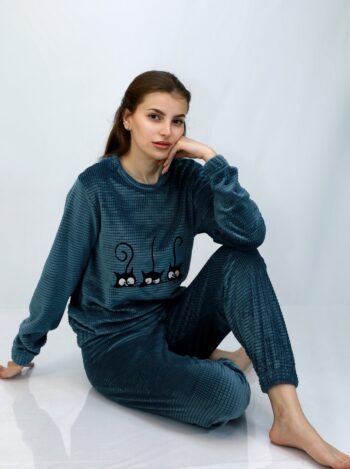 بيجاما نسائية شتوية مخمل – تطريز قطط
